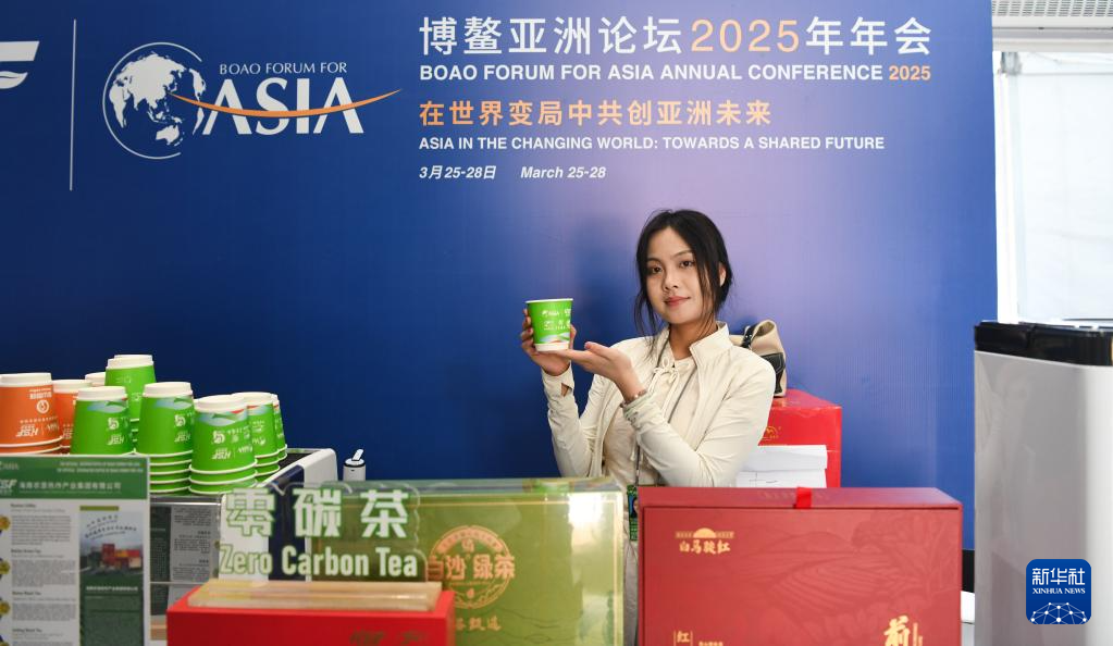 这是3月26日拍摄的在博鳌亚洲论坛新闻中心海南农垦热作产业集团有限公司展示的经碳中和认证的茶产品。