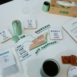 3月26日在博鳌亚洲论坛2025年年会会场外的休息区拍摄的一个桌面上的“零碳”信息。