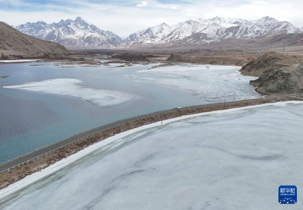 深圳援疆医生乘坐的车辆行驶在新疆塔县县城与库科西鲁格乡政府之间的山路上(3月24日摄,无人机照片)。
