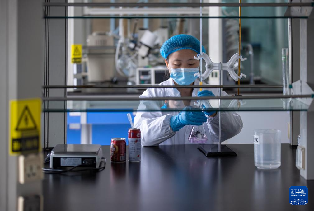 3月27日,在位于宁夏贺兰工业园区的宁夏厚生记食品有限公司技术中心理化实验室内,工作人员检测产品酸度。