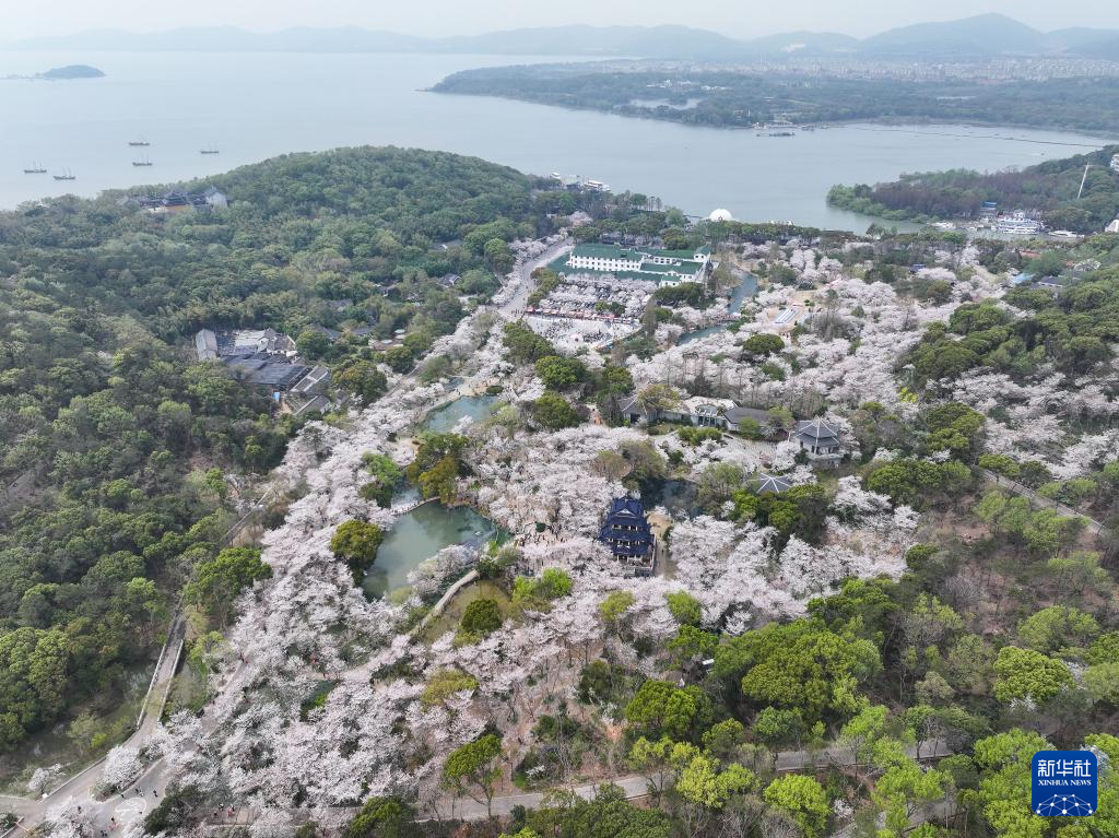 近日,江苏省无锡市太湖鼋头渚风景区樱花迎来盛花期,花海如云似雪,游人纷至沓来,尽享浪漫时光。