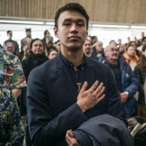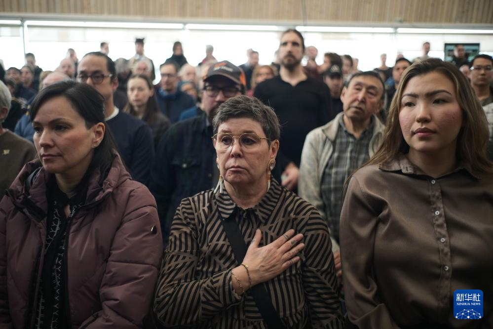3月28日,在丹麦自治领地格陵兰岛首府努克,居民参加新政府成立仪式。