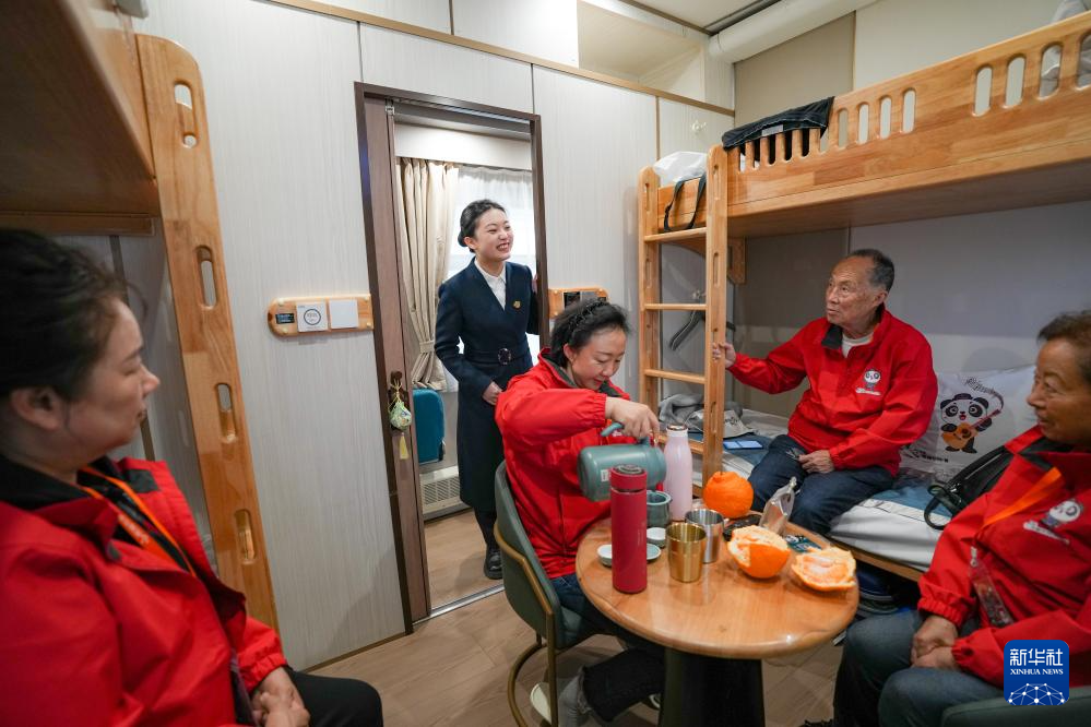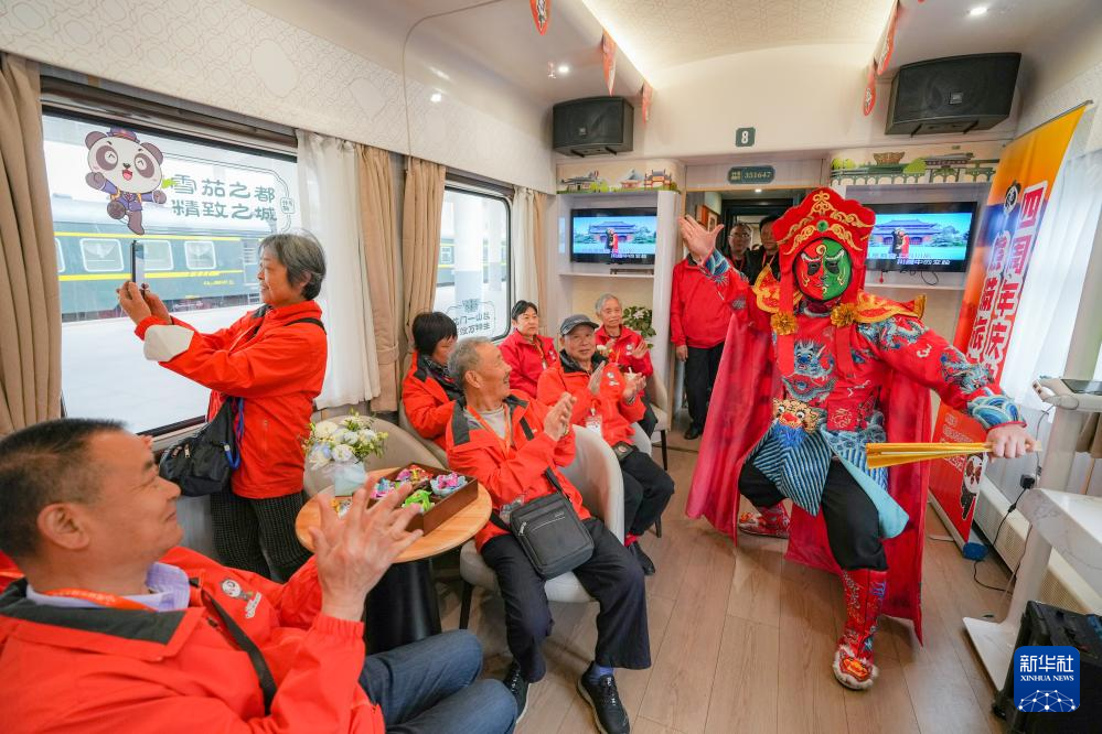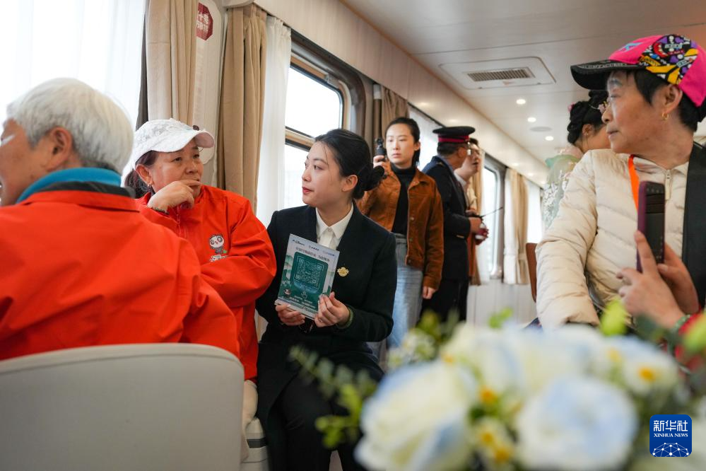 在这辆60岁以上的游客占比达到68%的“银发专列”上,中国铁路成都局集团公司26岁的“熊猫管家”张富铭正忙着在车厢内为老人们提供行程咨询服务。她介绍说,作为管家她会随时联络各团领队和列车乘务员,保证车厢内环境适宜,及时处理老年旅客的个性化需求,观察老年旅客的身体健康状况,为他们提供定制饮品、菜品等,也会在娱乐车厢举办列车特色活动。