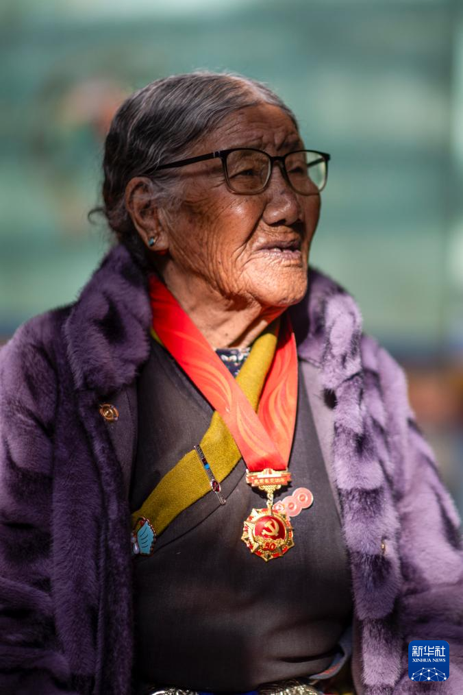 这是玉珍老人(3月17日摄)。家住日喀则市桑珠孜区聂日雄乡冲堆村的玉珍老人生于1938年,出生的时候身份是农奴。