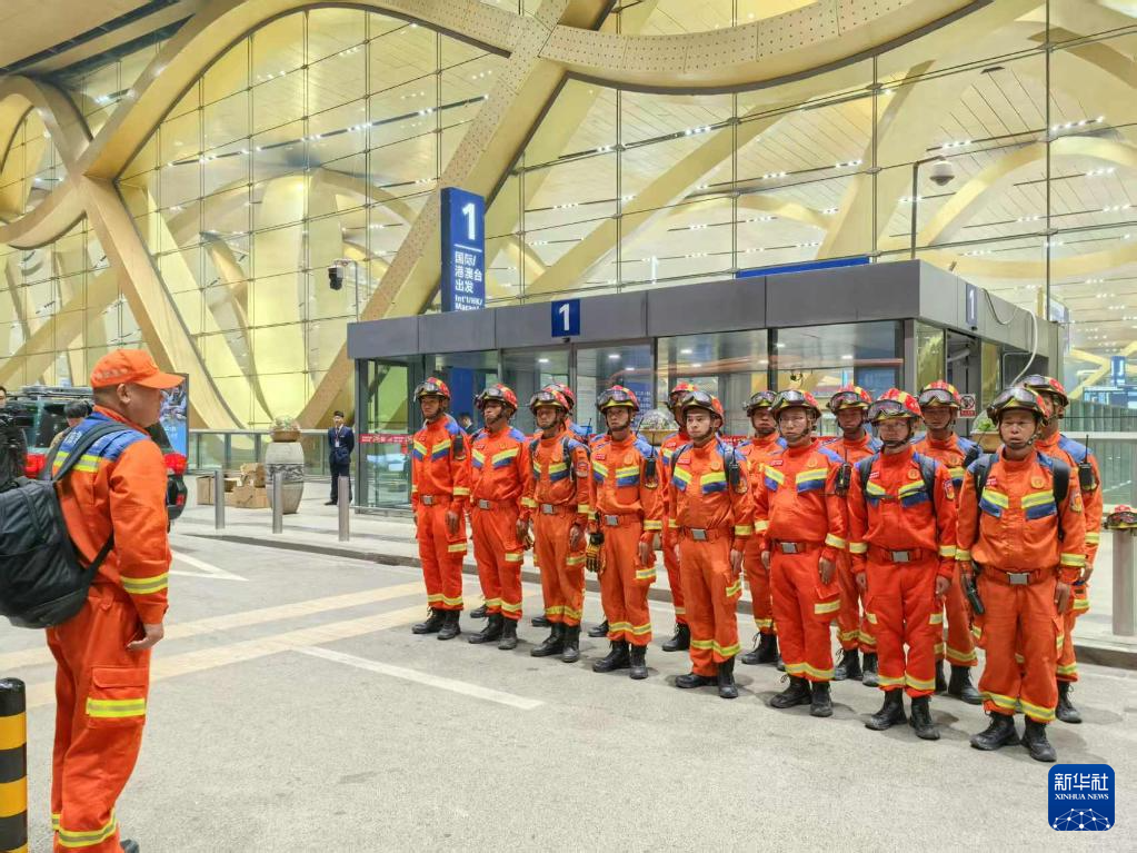 3月29日,中国云南救援医疗队在昆明长水国际机场出发大厅外列队,准备赶赴缅甸地震灾区。