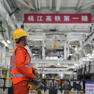 3月29日,中铁十四局技术人员在钱塘江隧道作业。
