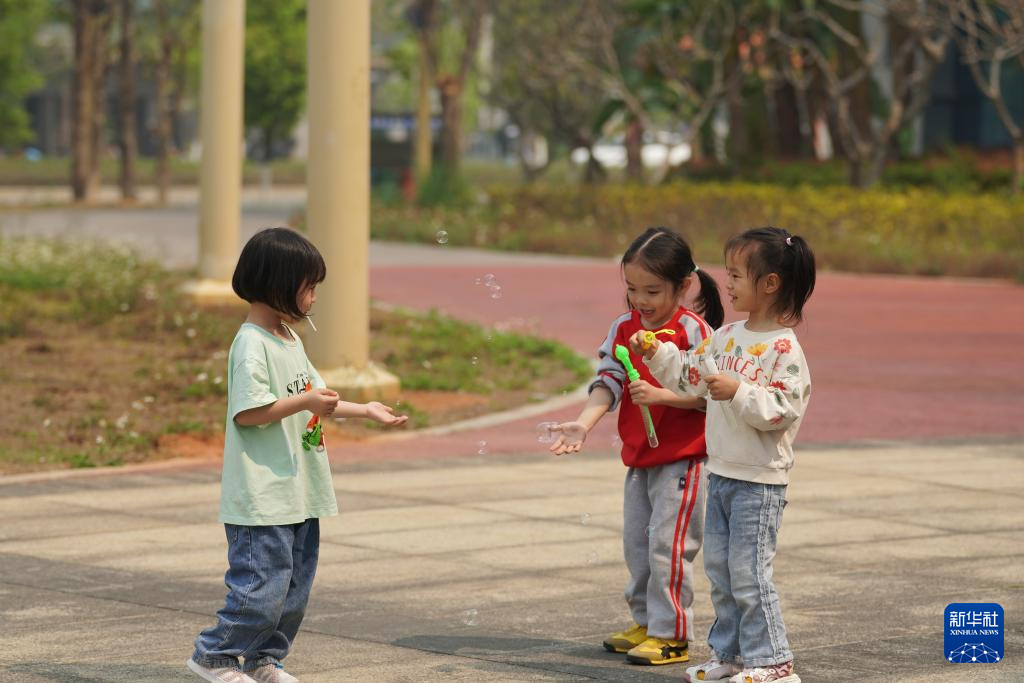 3月29日,在云南瑞丽,小朋友在广场上玩耍。