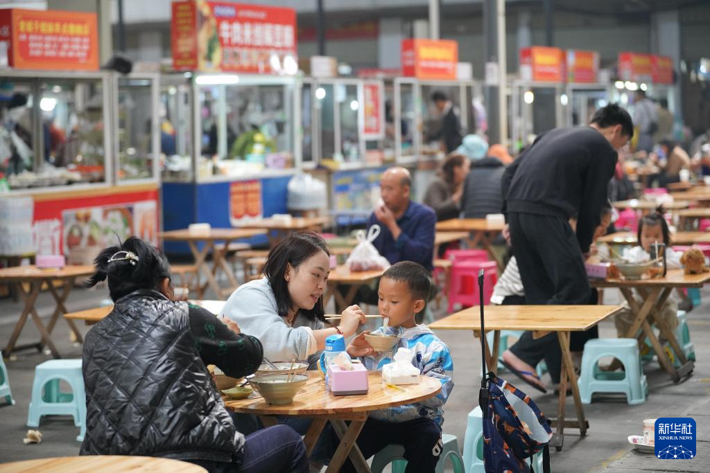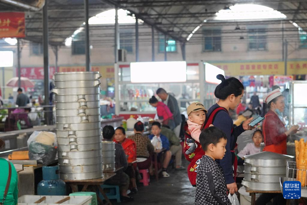 3月29日,人们在云南瑞丽一处综合农贸市场吃早点。