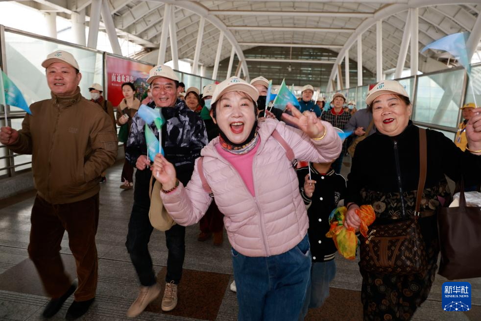 3月29日,在南通站,旅游团成员准备乘坐“水韵江苏”主题旅游列车。