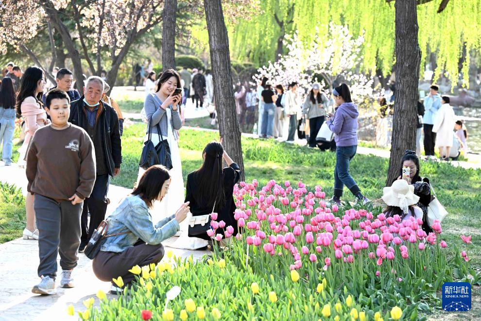 春日里,人们来到户外,赏花游玩,乐享美好春光。