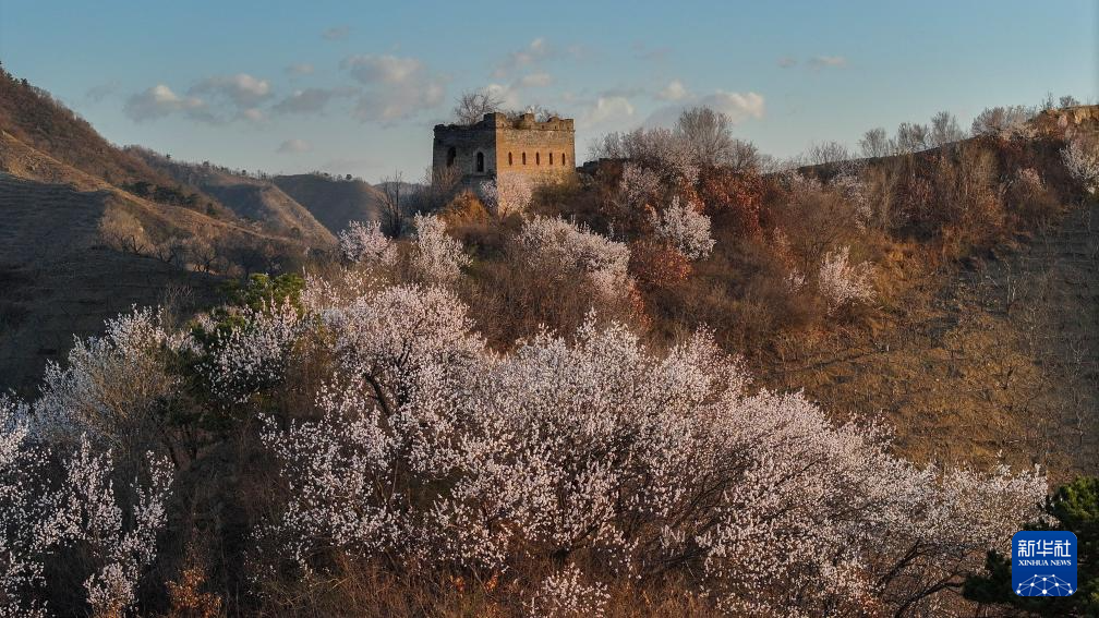 3月29日在河北省遵化市拍摄的古长城晨景(无人机照片)。