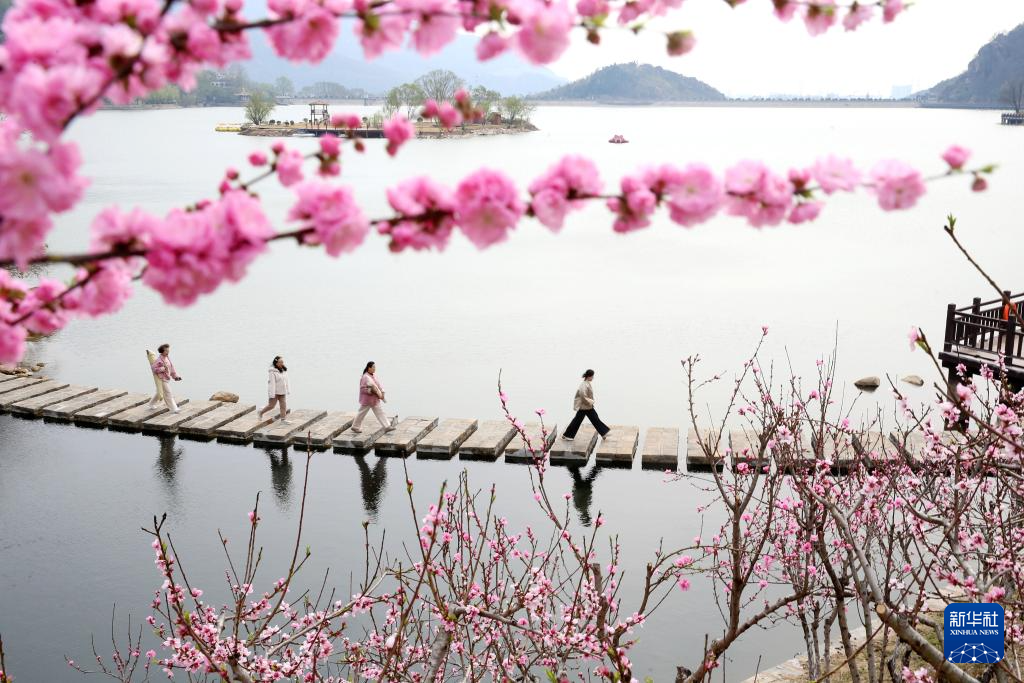 3月29日,市民在江苏省连云港市连云区宿城唐王湖景点游玩。