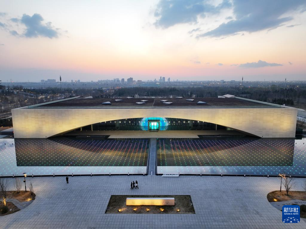 这是雄安新区大学园图书馆(3月16日摄,无人机照片)。该建筑立面设计形似简牍,折射出中国传统文化的韵味。
