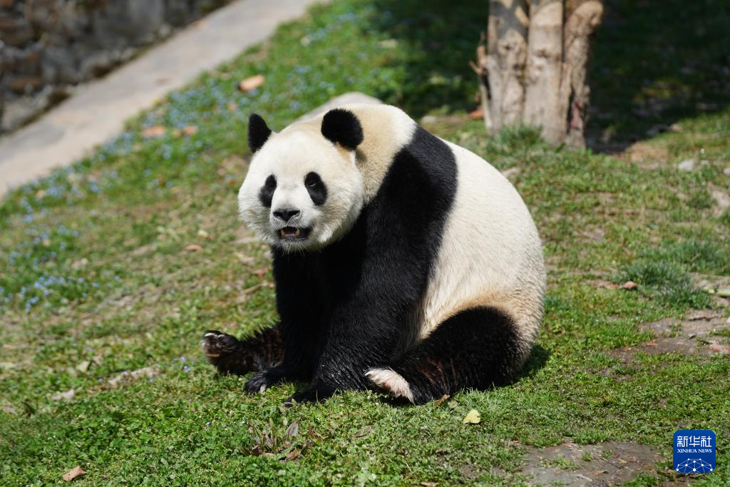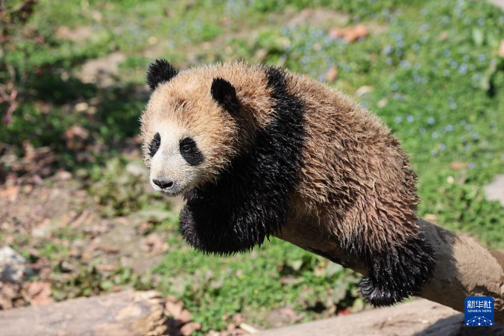 春日里,中国大熊猫保护研究中心卧龙神树坪基地生机盎然,大熊猫享受着美好春光,在草地上或休息或玩闹,萌态十足。