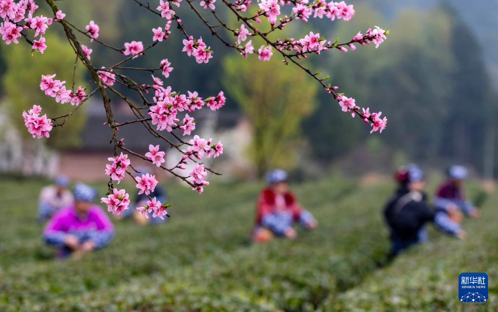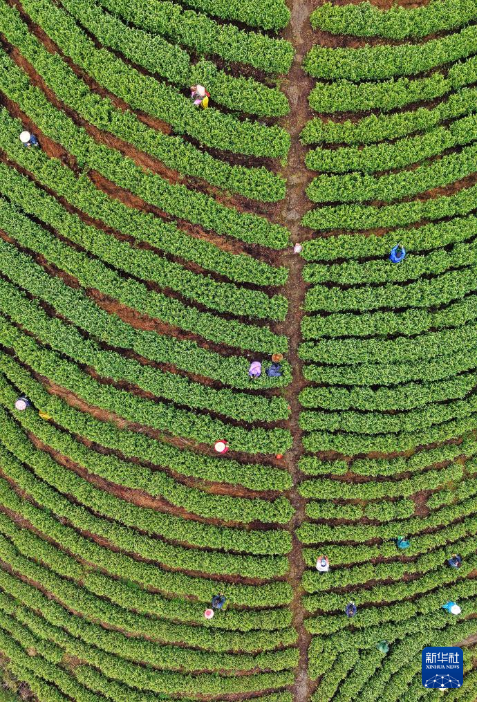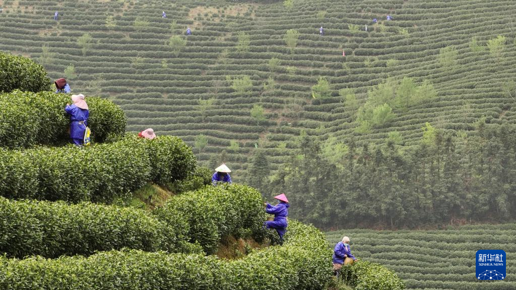 3月29日,茶农在贵州省黔西市中坪镇飞蛾社区黄泥屯茶山采摘春茶。