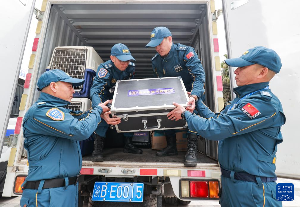 3月30日,重庆市蓝天救援队队员在装运救援设备。