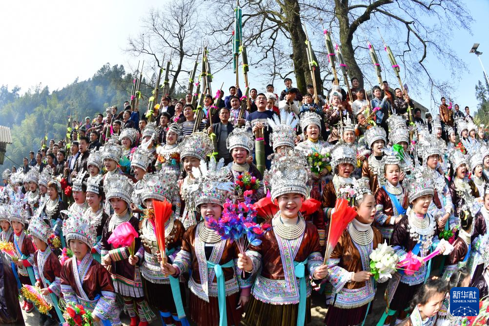 2019年2月5日,乌英苗寨村民在芦笙坪上合影。