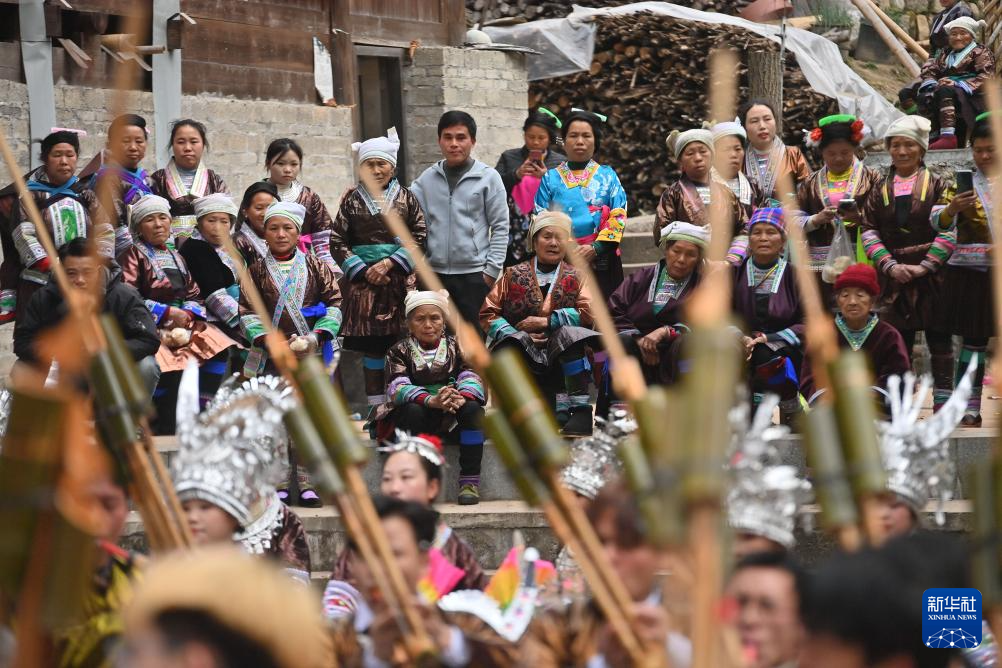2025年1月29日,乌英苗寨村民在观看芦笙踩堂舞。