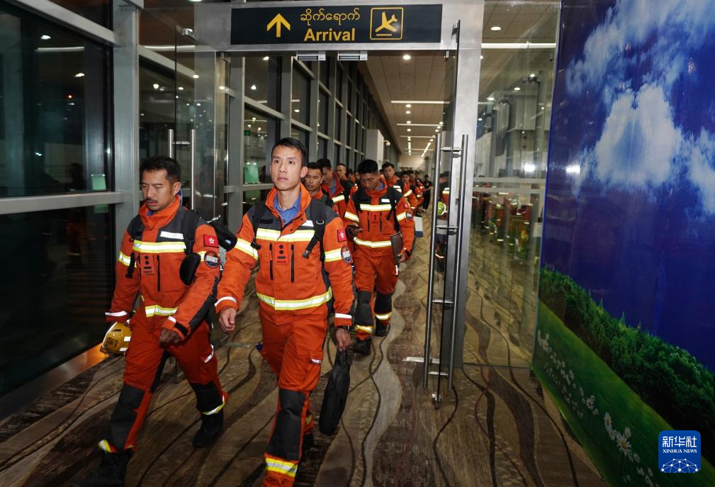 当地时间3月29日晚,中国香港特别行政区救援队抵达缅甸仰光国际机场。