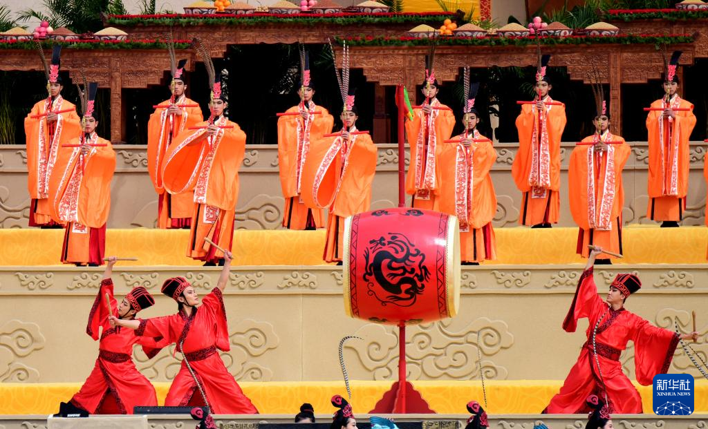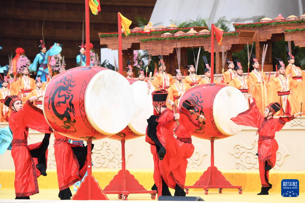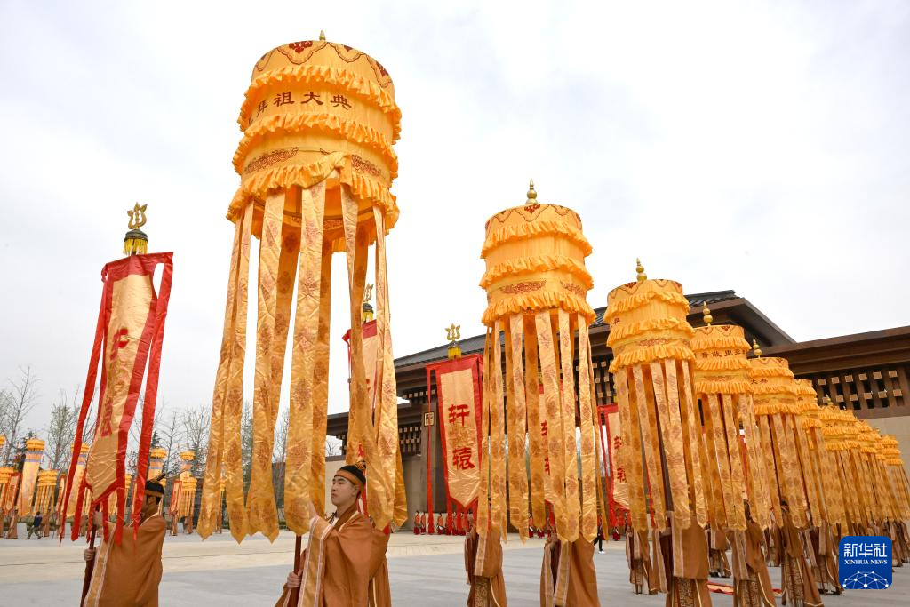 3月31日,演员在乙巳年黄帝故里拜祖大典迎宾仪式上表演。