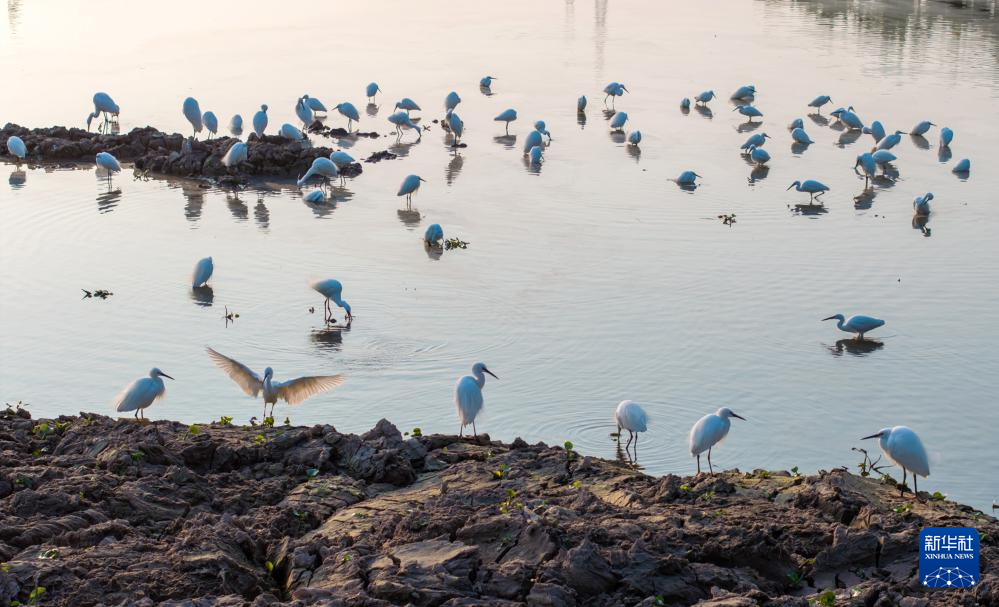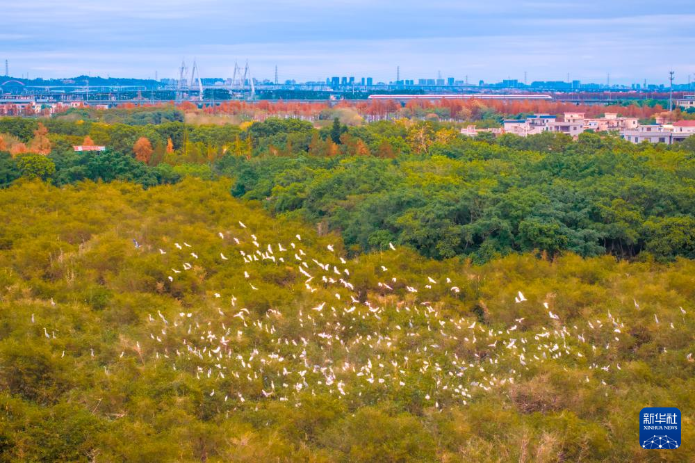 鹭鸟在云鹭湿地公园栖息(2月10日摄,无人机照片)。