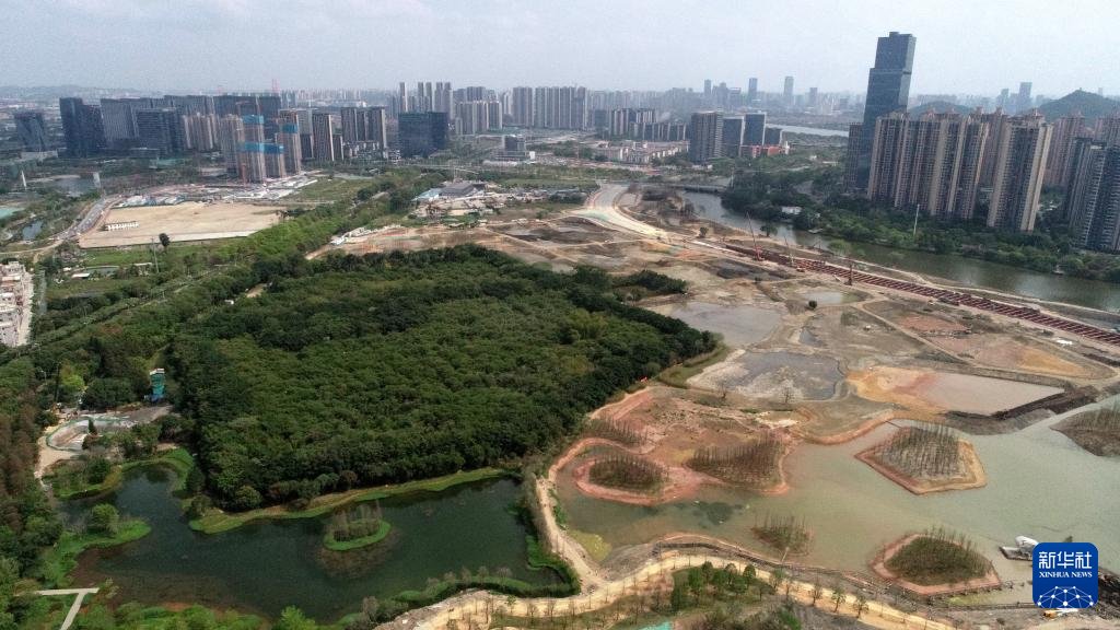建设中的云鹭湿地公园(3月27日摄,无人机照片)。