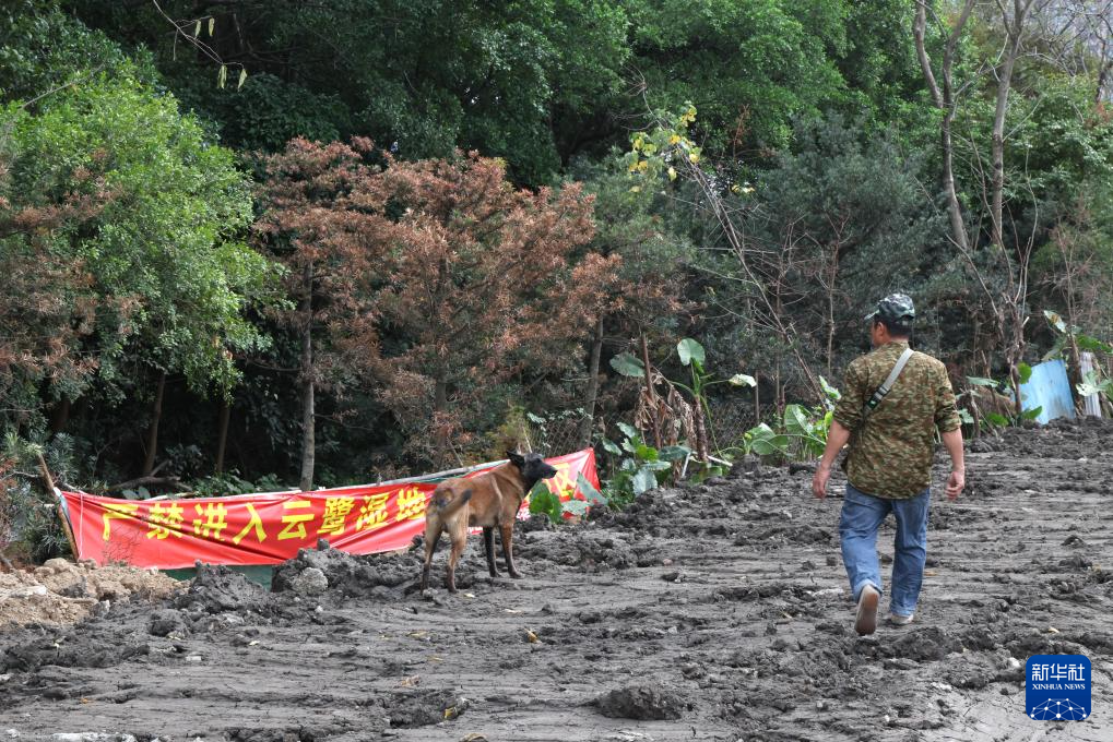 冼铨辉带着他的狗在湿地公园四周巡查(3月3日摄)。