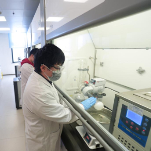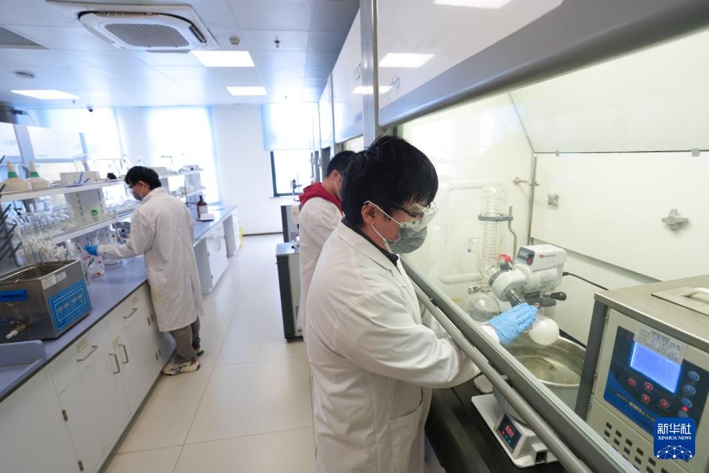 4月1日,在浙江国邦药业有限公司,工作人员在实验室进行小分子药物合成实验。该公司致力于打造食药研产全球化产业基地,一季度实现满负荷生产,产值同比增长约14%。
