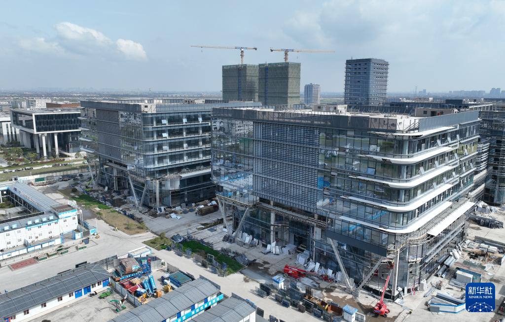 这是建设中的杭州湾创新生态园,该园区聚焦半导体材料、智能装备、医疗器械等新兴产业,计划于今年9月建成试运行(4月1日摄,无人机照片)。