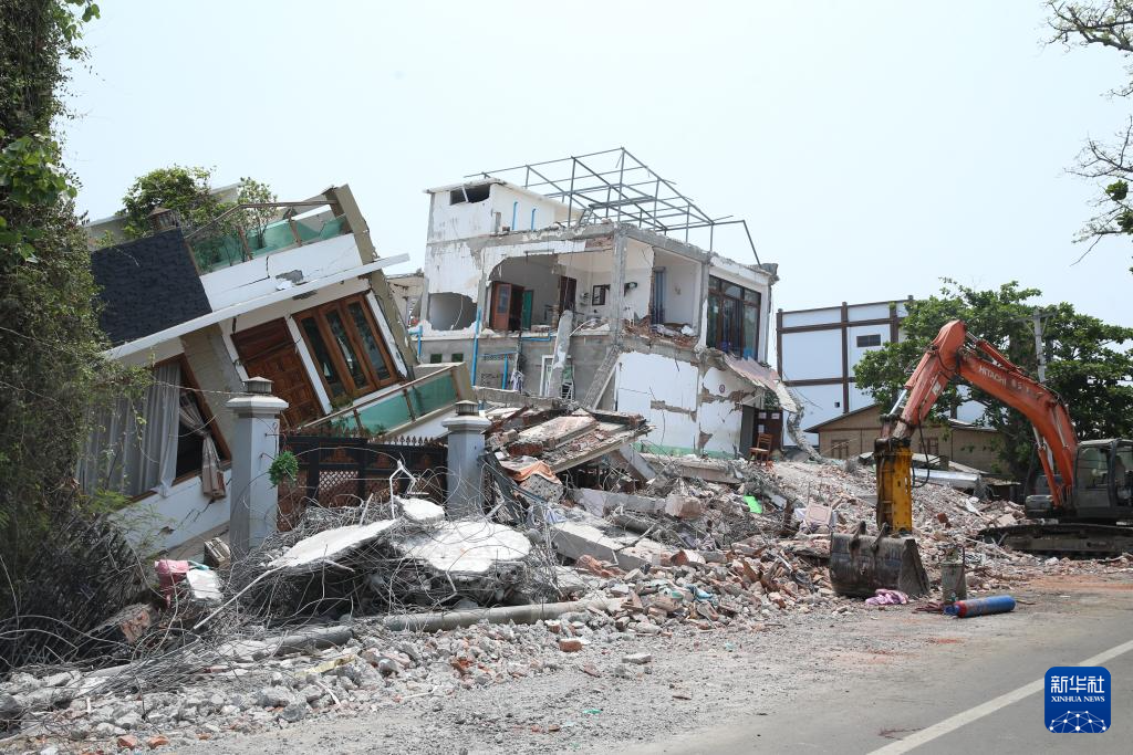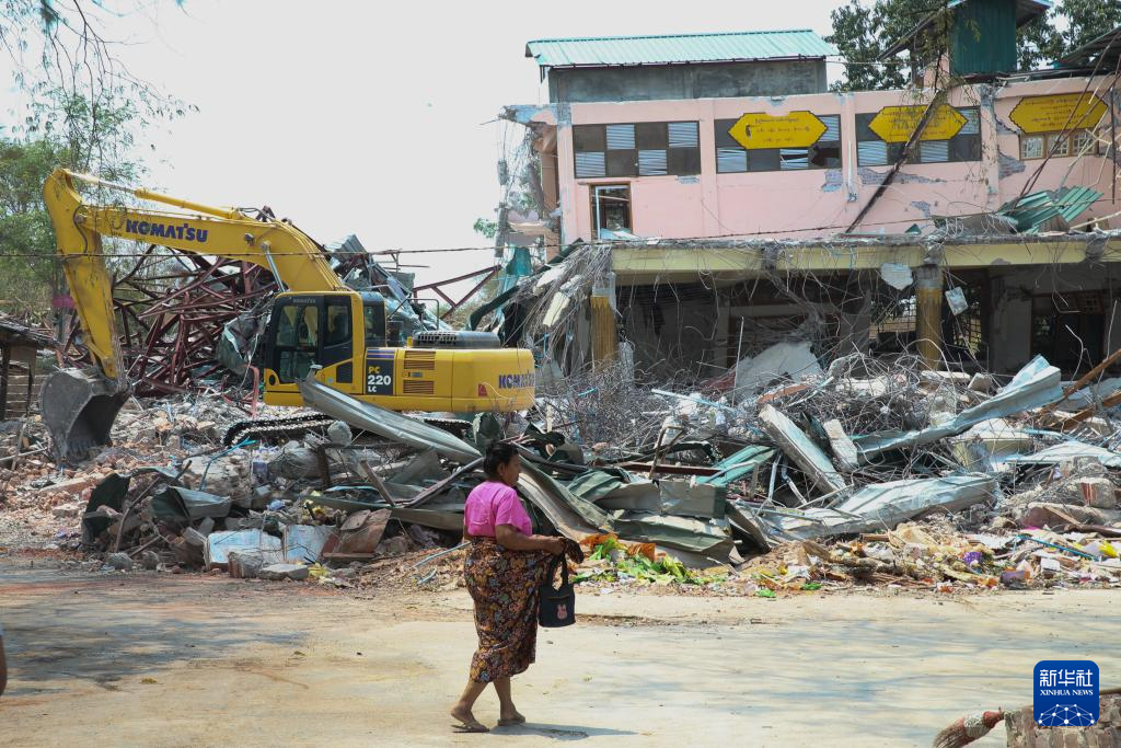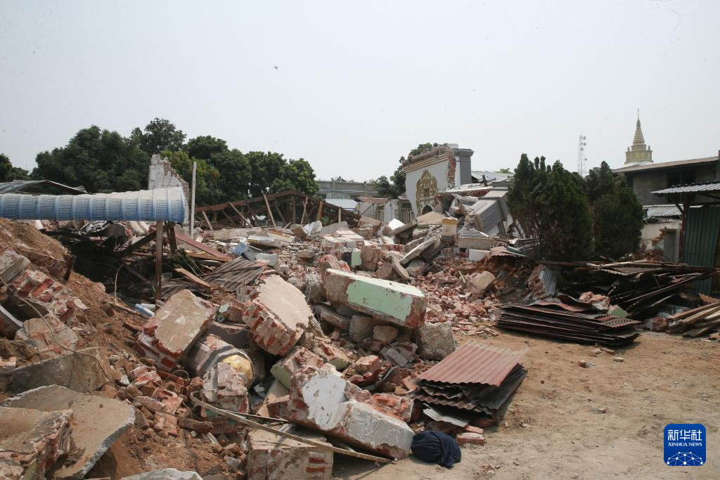 这是4月1日在缅甸实皆市拍摄的地震中受损的建筑。