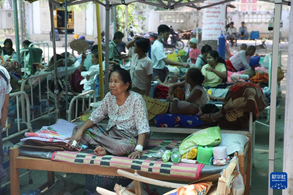 4月1日,在缅甸实皆市,地震中受伤的民众接受医疗救治。