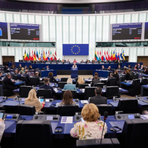 这是4月1日在法国斯特拉斯堡拍摄的欧洲议会全会现场。