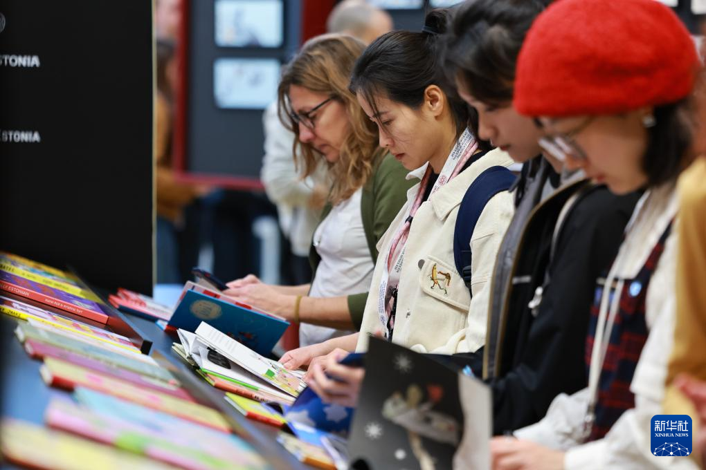 3月31日,在意大利博洛尼亚,人们在第62届博洛尼亚童书展主宾国爱沙尼亚展区阅读书籍。
