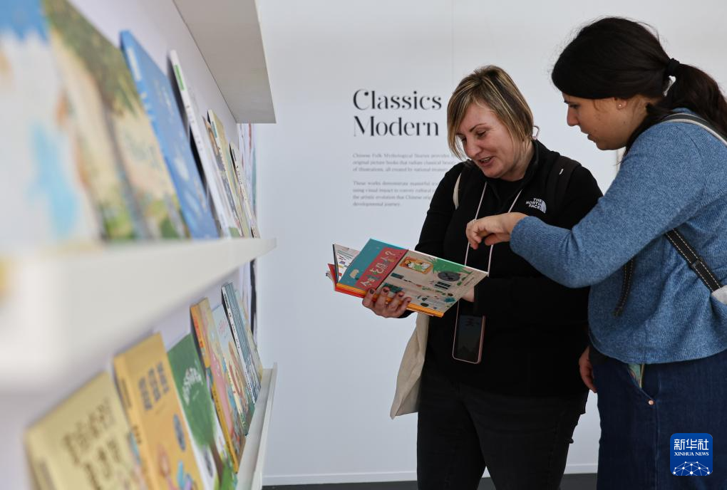3月31日,在意大利博洛尼亚,人们在第62届博洛尼亚童书展中国出版代表团展区阅读书籍。