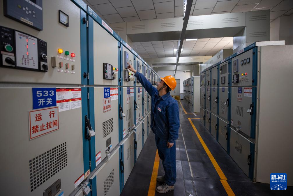 4月1日,工作人员在宁夏红寺堡扬水管理处红一泵站高压室查看设备运行数据。