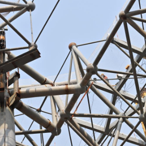 4月2日,建设者在南宁吴圩国际机场T3航站楼中央区钢结构屋盖上施工。