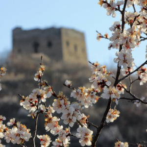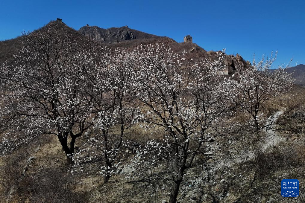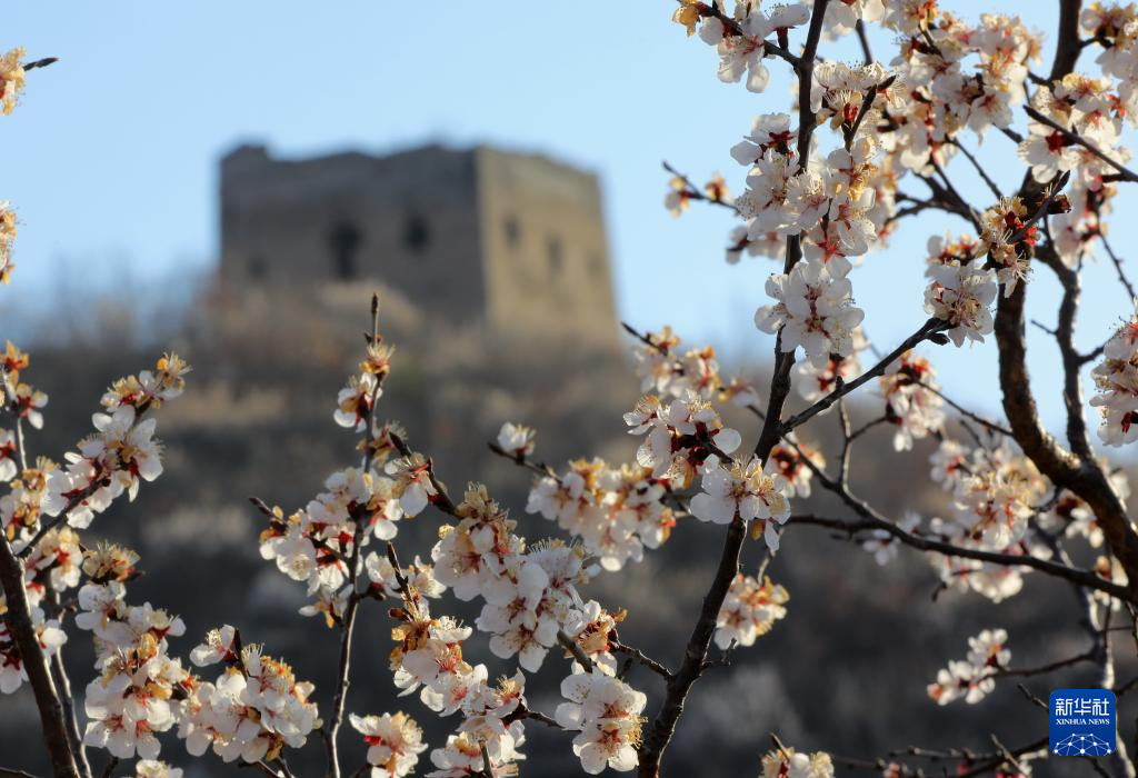 近日,河北省秦皇岛市海港区长城两侧的杏花相继开放,勾勒出一幅充满诗情画意的春日画卷。
