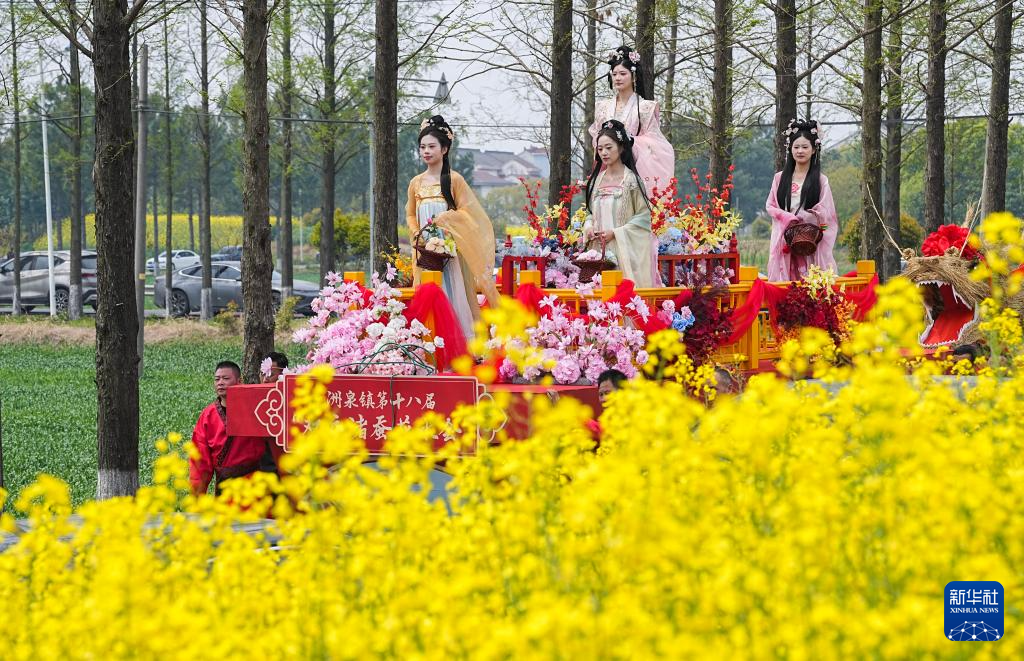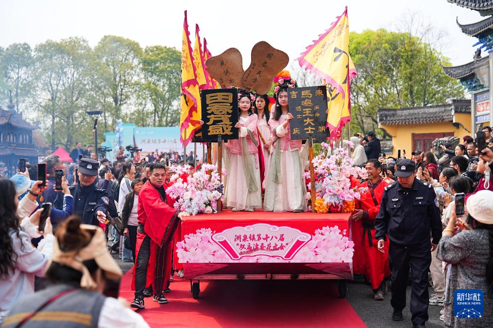 这是洲泉镇2025春季“双庙渚蚕花水会”上举行的蚕花巡游活动(4月4日摄)。