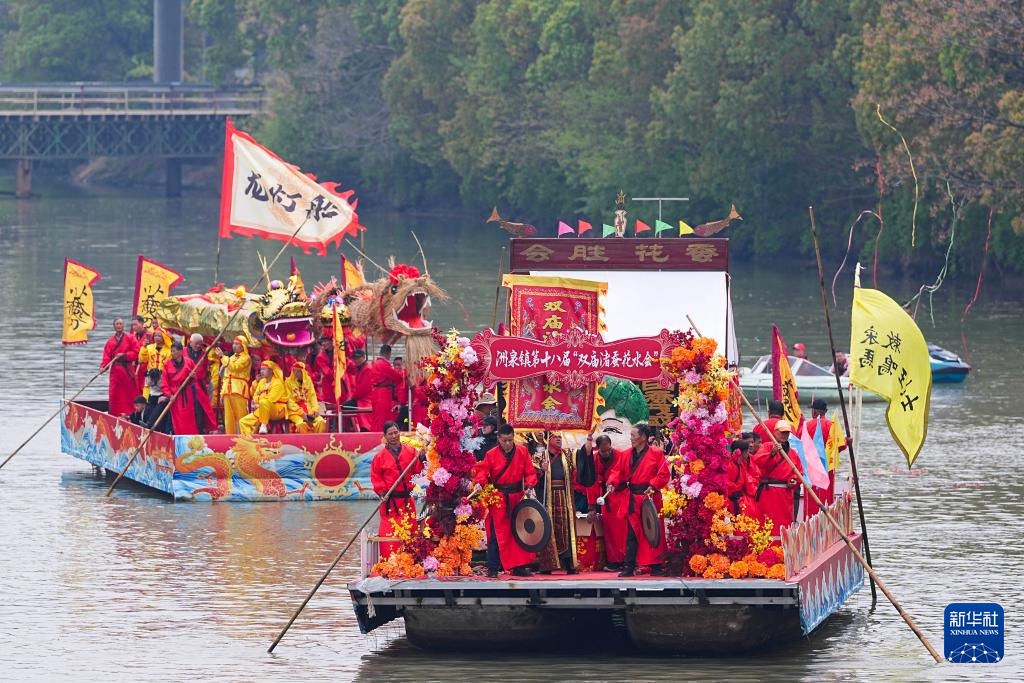 这是洲泉镇2025春季“双庙渚蚕花水会”上举行的水上巡游活动(4月4日摄)。