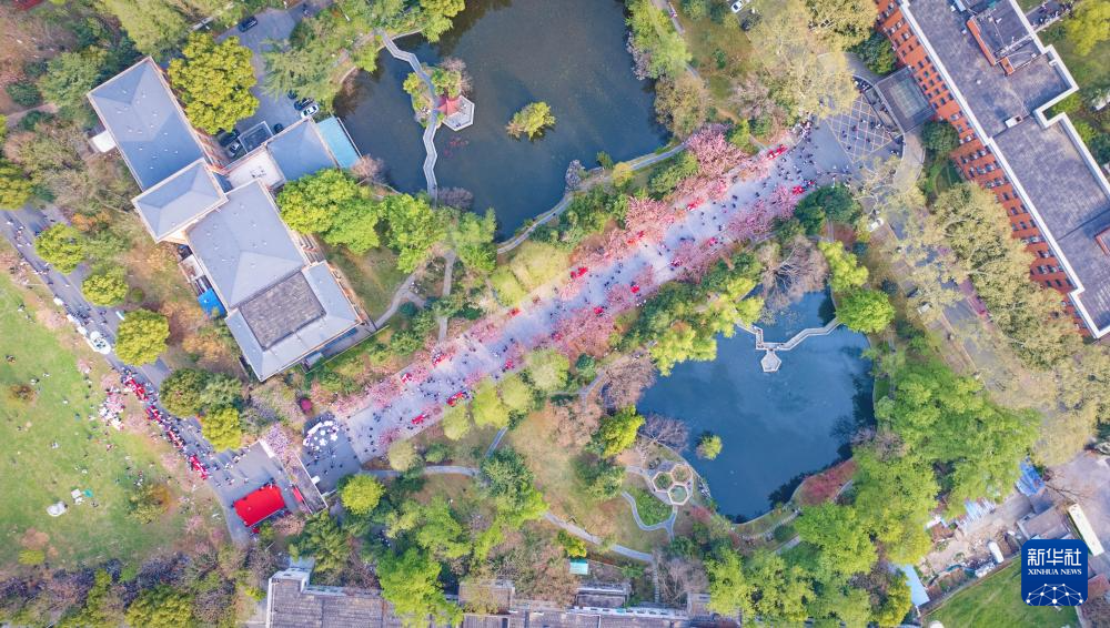 这是3月30日拍摄的中国科学技术大学东区樱花大道(无人机照片)。