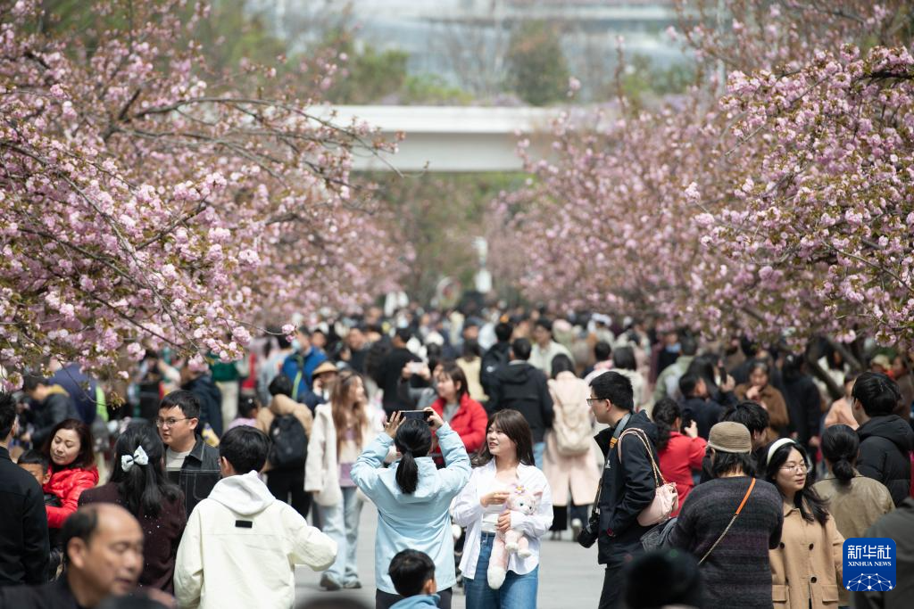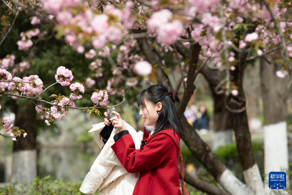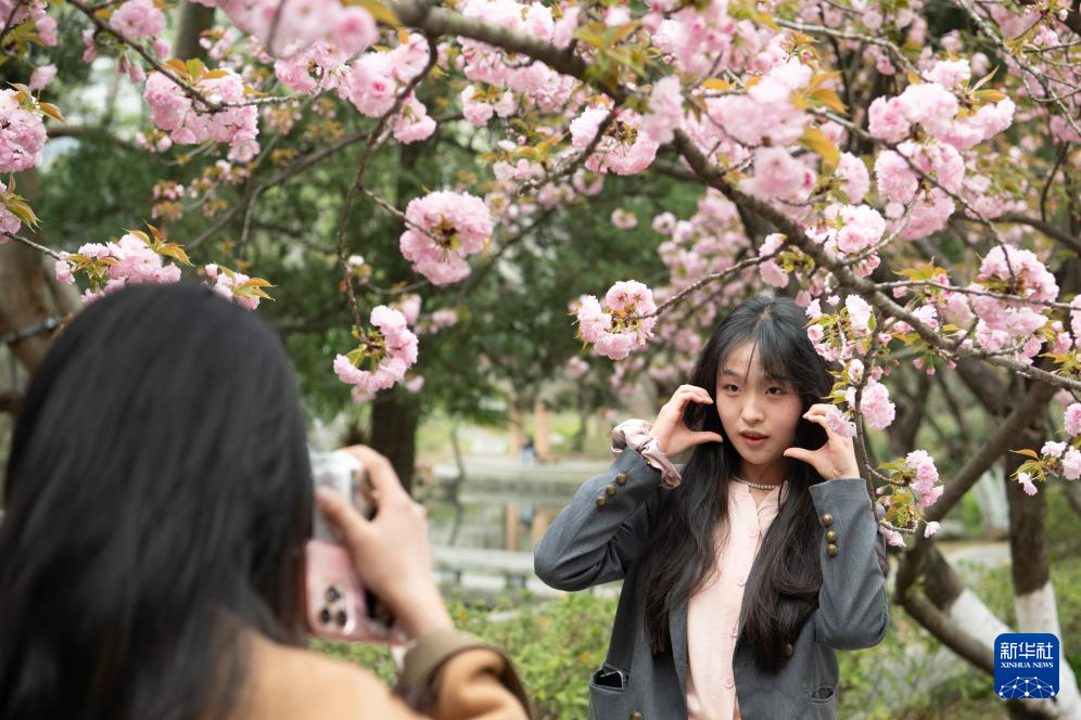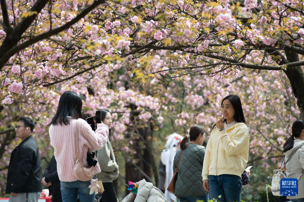 3月30日,人们在中国科学技术大学东区樱花树下拍照留影。