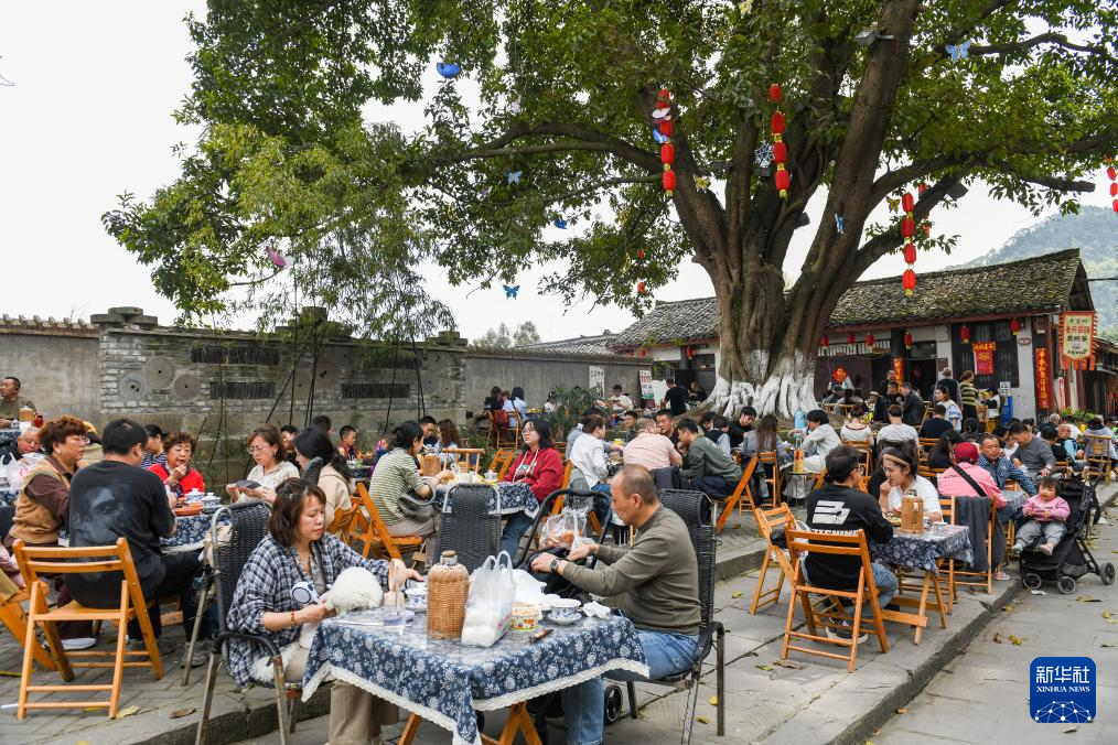 4月5日,游客在四川省阆中古城贡院广场观看“鼓上舞”。