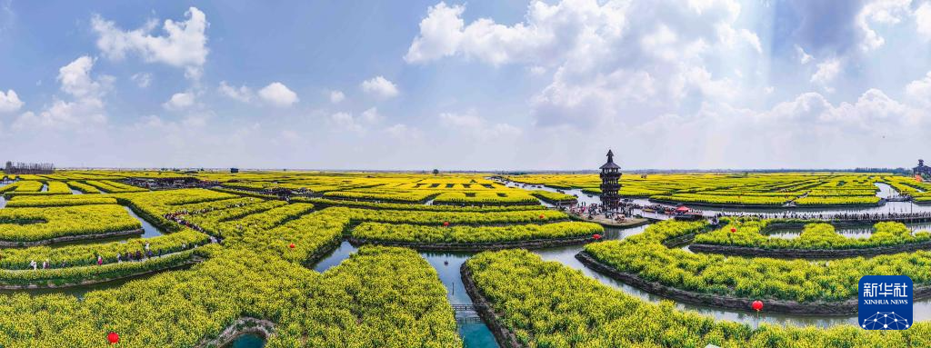 4月5日,游客在江苏兴化千垛景区游览(无人机全景照片)。
