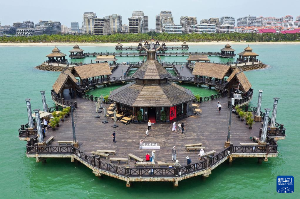 4月4日,游客在文昌逸龙湾海上图书馆游玩(无人机照片)。