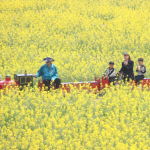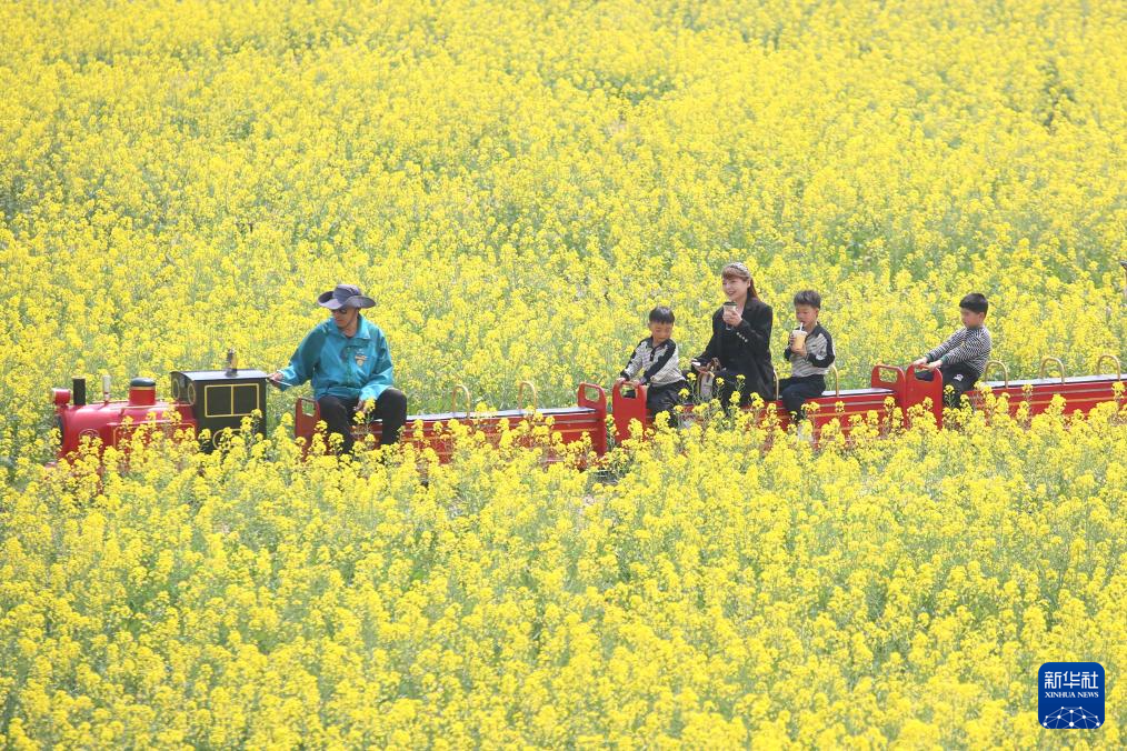 4月5日,游客在江苏省常州市金坛区仙姑村观赏油菜花。