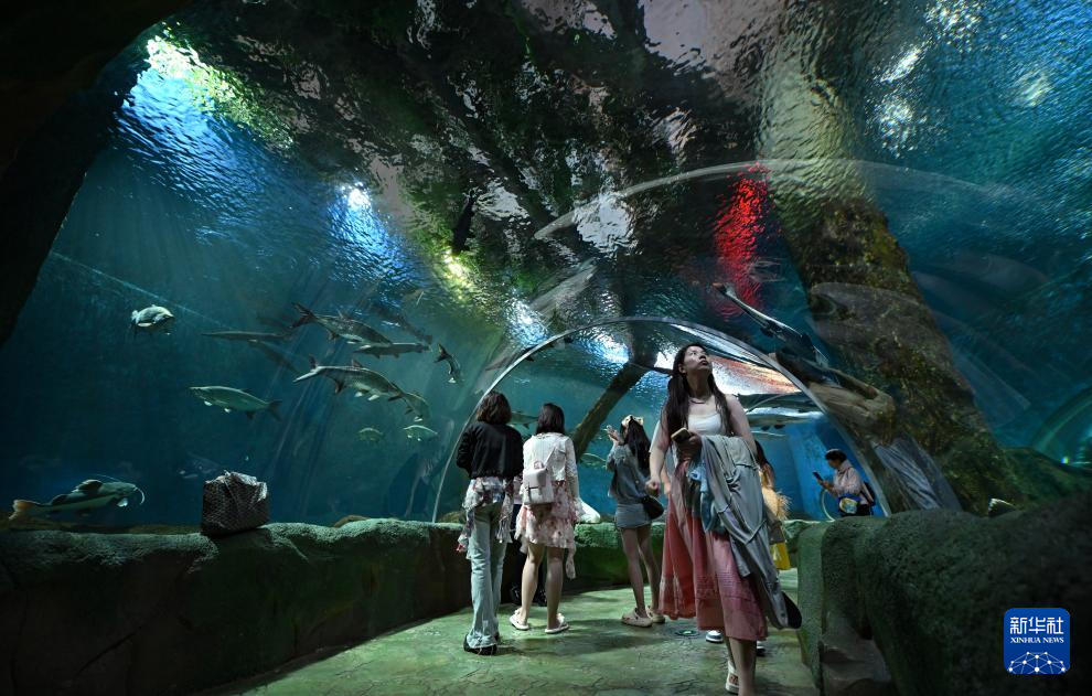 4月4日,游客在海南海洋欢乐世界度假区游玩。