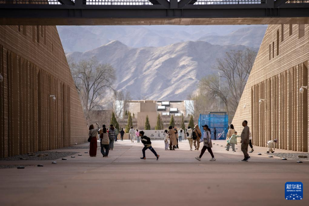 4月5日,游客在宁夏银川西夏陵景区内游玩。