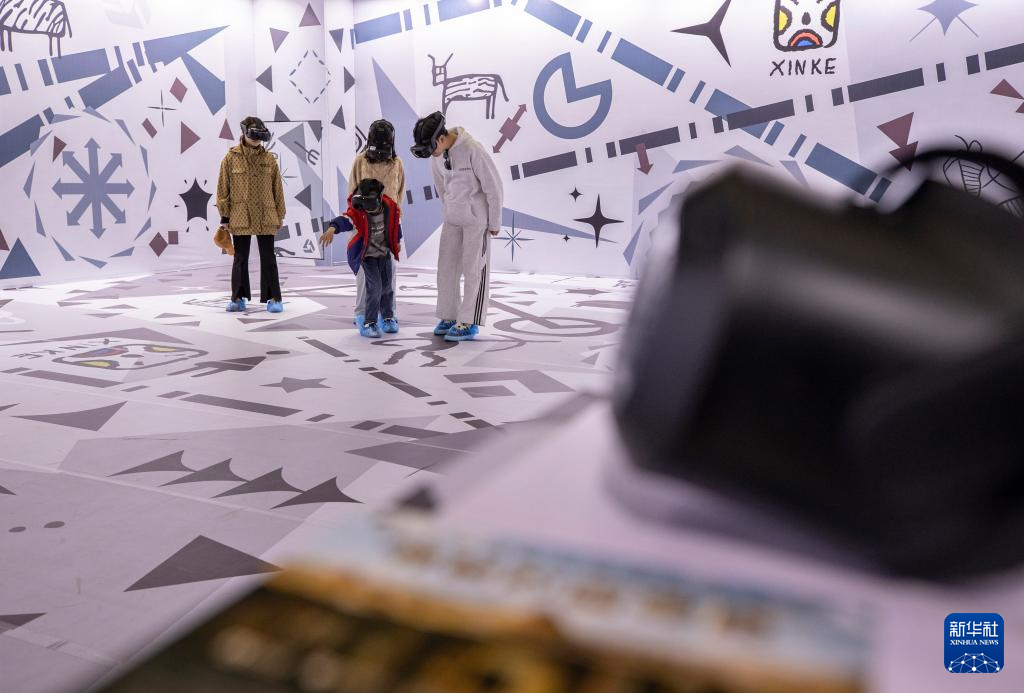 4月5日,游客在宁夏银川西夏陵景区VR体验区游玩。