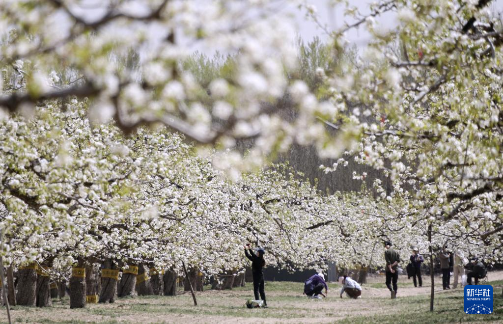 4月5日,游客在北京市大兴区庞各庄镇梨花村的古梨园内赏花。