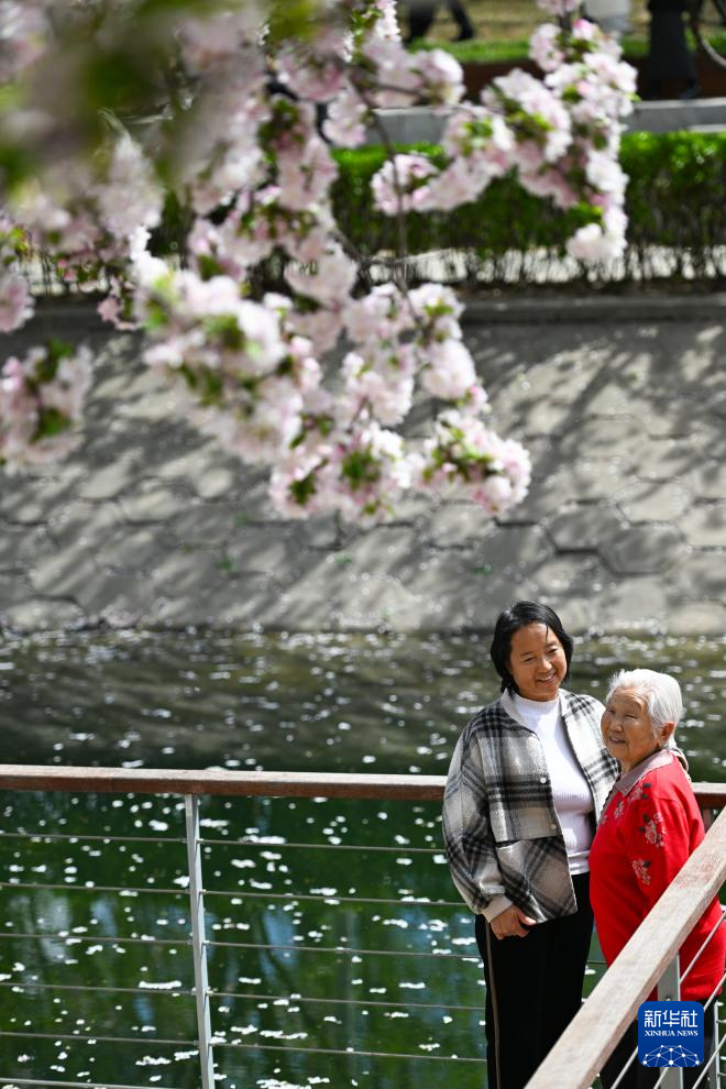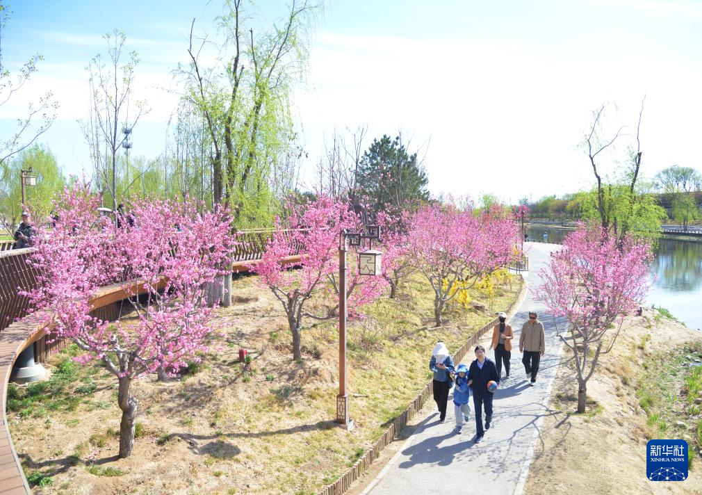 4月5日,市民在位于北京市海淀区的清河之洲公园赏花踏青。